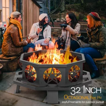 32 Inch Octagonal Outdoor Fire Pit – Heavy Duty Wood Burning Patio Firepit