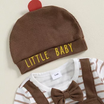 Baby Thanksgiving Romper with Turkey Embroidery & Hat - Long Sleeve Striped Jumpsuit